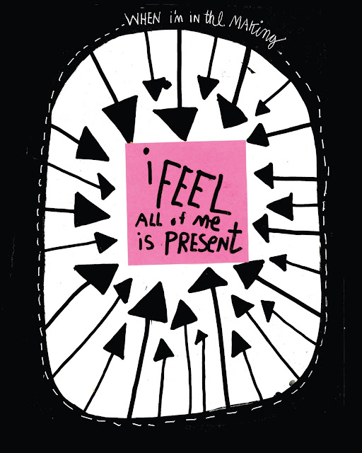 I have a few boxes of notes that i jot scribble mark down while I'm making something else. Over the years these notes have developed some patterns, repeats, themes. One of them is this, that my process knows more then I do. It has a way and it also has needs. Some days it needs more room and time to let loose and go without ANY idea or constraint as to WHAT it is creating. This is full out play mode which can get messy and wild. And then some days the process wants a smaller path, wants to have an aim wants some limits and guidelines with it's direction. Both of these approaches to sitting down and creating are necessary atleast for me. And I'm learning to experience them both which is always a practice.
